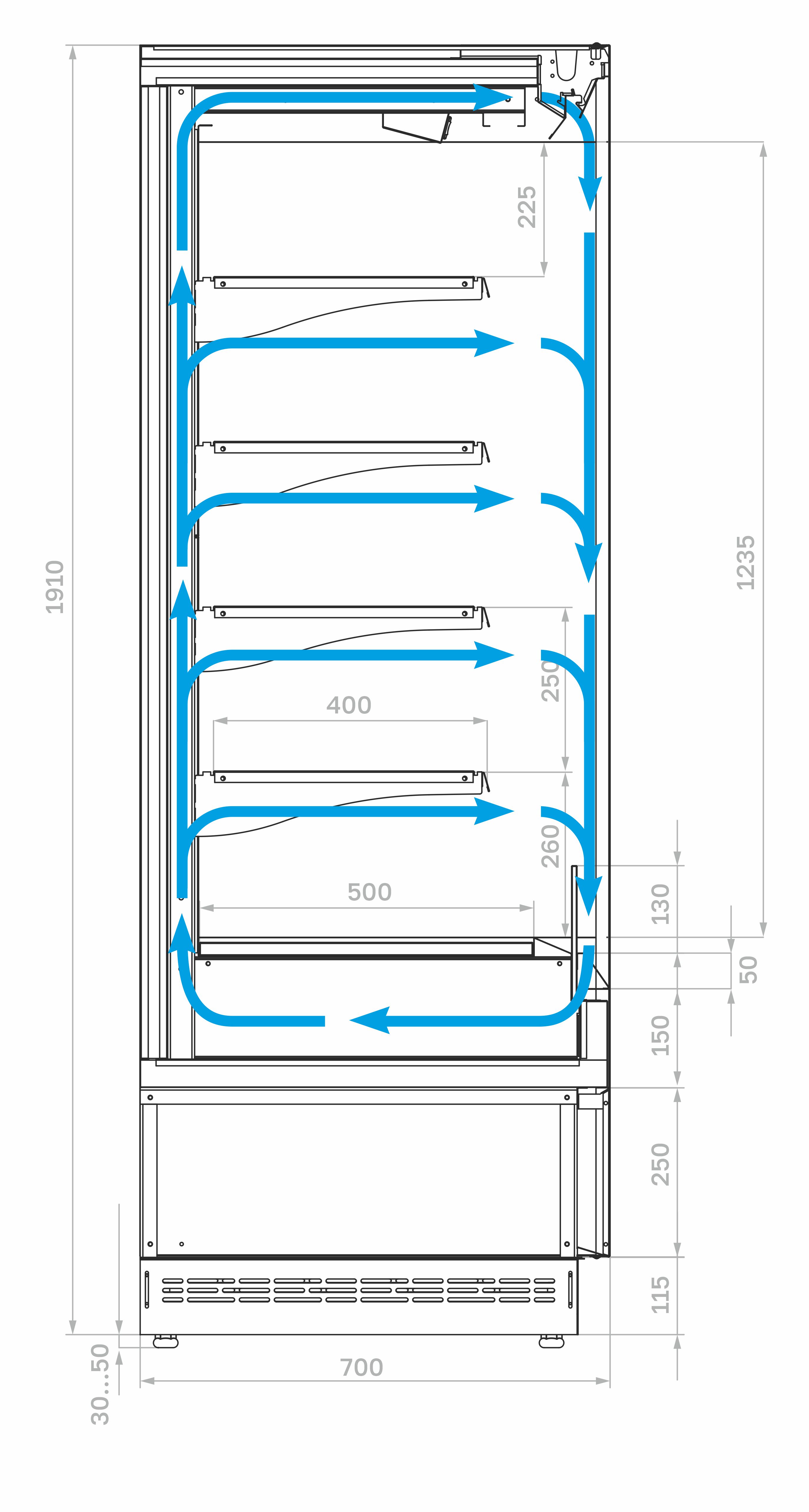 Высота зоны выкладки: 1235 мм.