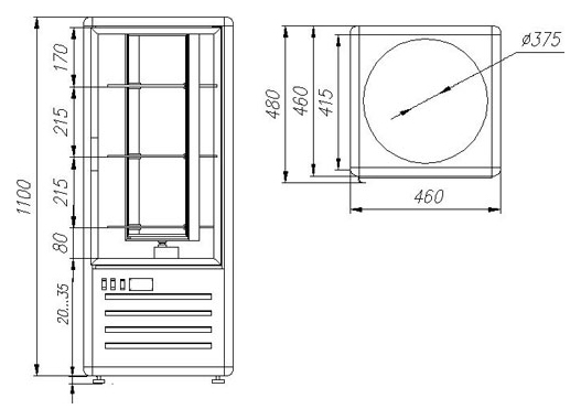 • Диаметр каждой полки: 375 мм – оптимально для выкладки тортов, пирожных, выпечки;