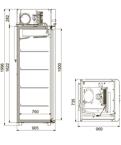 Каталог оборудования Холодильное оборудованиеШкафы холодильныеШкафы морозильные низкотемпературные до -18 °СШкаф морозильный Polair Polair CB107-Gm Alu Шкаф морозильный Polair Polair CB107-Gm Alu Код товара: 062-591 Поделиться: WhatsAppTelegram СравнитьДобавить в КПВ избранное 0 165 920 ₽ В корзину 0 шт Под заказСамовывоз сегодня бесплатно Взять в кредит Купить в лизинг Получить консультацию в WhatsApp Описание Характеристики Отзывы 0 Инструкции 4 Шкаф морозильный Polair Polair CB107-Gm Alu разработан для демонстрации и надежного хранения продуктов на предприятиях общественного питания и торговли. Цельнозаливной корпус выполнен из нержавеющей стали как снаружи, так и внутри (кроме задней стенки), что гарантирует высокую прочность и долговечность конструкции. Алюминиевые профили дверей и верхней панели подчеркивают современный и премиальный внешний вид шкафа. Оборудование рассчитано на работу при температуре окружающей среды до +40 °С и относительной влажности воздуха до 80%, что делает его надежным решением даже в сложных условиях эксплуатации. Основные особенности: Многофункциональная контрольная панель с жидкокристаллическим дисплеем Верхнее расположение агрегата, обеспечивающее удобный доступ к внутреннему объему Поддержка дистанционного мониторинга и записи данных в журнал контроллера (при использовании сетевой карты), а также передача данных через Bluetooth Клапан Шредера и компенсационный клапан с ПЭНом обогрева ПЭН обогрева трубки слива конденсата и ПЭН обогрева дверного проема для предотвращения образования наледи Распашные двери с полностью интегрированными ручками и эластичными магнитными уплотнителями, обеспечивающими максимальную герметизацию Микропереключатель, отключающий вентилятор и включающий подсветку при открытии дверей Встроенная внутренняя подсветка, улучшающая обзор содержимого Регулируемые по высоте ножки и педаль для удобного открывания двери Замок для обеспечения безопасности хранения 4 полки формата GN 2/1 (530×650 мм) с допустимой нагрузкой до 40 кг Толщина теплоизоляции корпуса — 61 мм Изображение товара, представленного на фото, может отличаться от его фактического вида. Показать все Габаритные размеры735×945×1996 ммДиапазон рабочей температурыдо -18 °CДлина735 ммГлубина450 ммВысота1996 ммОбъём700 лМатериал корпусаНержавеющая сталь Тип охлажденияДинамическое Тип управленияМеханическое Расход электроэнергии в сутки12 кВтКоличество полок2 штКоличество дверей1 штЗамокЕсть Тип двериМеталлическая Способ открыванияРаздвижные (купе) Напряжение220 ВХладагентR290 Расположение агрегатаНижнее Габариты в упаковке850×988×2160 ммВес нетто128 кгВес брутто152 кгБрендPolairВсе шкафы морозильные низкотемпературные до -18 °С POLAIRВсе шкафы морозильные низкотемпературные до -18 °С 4 уровня Оставить отзыв Еще никто не оставил отзыв на этот товар Схема POLAIR CB107-Gm Alu.jpgИнструкция на POLAIR CB107-Gm Alu.pdfДекларация о соответствии.pdfСертификат соответствия.pdf Похожие товары Перейти в каталог Под заказ 151 662 ₽ Шкаф морозильный Polair CB107-Sm Alu Под заказ 207 934 ₽ Шкаф холодильный низкотемпературный Arkto F1.4-G Под заказ 242 105 ₽ Шкаф морозильный с глухой дверью TEFCOLD RF505 нержавеющий Под заказ 61 617 ₽ Шкаф морозильный HURAKAN HKN-RFS400 Под заказ 246 440 ₽ Шкаф-надстройка морозильный Kifato Барселона 2500 Под заказ 210 203 ₽ Шкаф морозильный Polair DB114-S без канапе В наличии 121 535 ₽ Шкаф морозильный Polair CB107-S В наличии 161 420 ₽ Шк