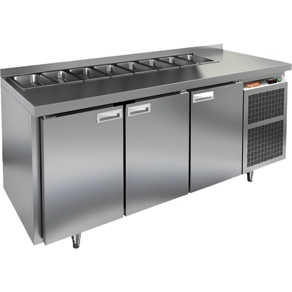Каталог оборудования Холодильное оборудованиеСтолы охлаждаемыеСтолы холодильные для салатовСтол холодильный для салатов HiCold SL1-111SN (1/3) без крышки Стол холодильный для салатов HiCold SL1-111SN (1/3) без крышки Код товара: 064-519 Поделиться: WhatsAppTelegram СравнитьДобавить в КПВ избранное 0 163 162 ₽ В корзину 0 шт Под заказСамовывоз сегодня бесплатно Взять в кредит Купить в лизинг Получить консультацию в WhatsApp Описание Характеристики Отзывы 0 Инструкции 2 Стол холодильный для салатов HiCold SL1-111SN (1/3) без крышки предназначен для предприятий общественного питания и торговли. Он обеспечивает хранение и подготовку ингредиентов для пиццы, салатов и других блюд, а также охлаждение и кратковременное хранение скоропортящихся продуктов. Модель сочетает рабочую поверхность и холодильный объем, позволяя повару иметь все необходимые компоненты под рукой. Корпус и столешница выполнены из нержавеющей стали, обеспечивая надежность и долговечность. Особенности: Динамическая система охлаждения — равномерное распределение температуры внутри холодильного объема. Автоматическая оттайка — упрощает уход за оборудованием. Электронная панель управления — точная настройка температуры и режимов работы. 3 вместительные внутренние полки формата GN 1/1 — удобное хранение ингредиентов. Автоматические доводчики дверей с фиксатором открытого положения — комфорт и безопасность работы. Легкозаменяемые магнитные уплотнители — простота обслуживания. Открытая агрегатная часть — облегчает доступ для обслуживания. Регулируемые по высоте ножки — адаптация к рабочей поверхности. Столешница с бортом, толщина столешницы и теплоизоляции 50 мм — надежная защита и удобство работы. Размер полки: 430×320мм (GN 1/1) Максимальная глубина гастроемкостей: 100 мм HiCold SL1-111SN (1/3) без крышки — многофункциональный и надежный стол для профессиональной кухни. Обеспечивает удобство работы, эффективное охлаждение и безопасное хранение продуктов. Мобильная модификация с колёсами позволяет легко перемещать стол, что делает его идеальным для ресторанов, кафе и пиццерий.Изображение товара, представленного на фото, может отличаться от его фактического вида. Показать все Габаритные размеры1835×600×850 ммДиапазон рабочей температурыот +2 до +10 °CРасположение агрегатаБоковое Материал столешницыНержавеющая Тип столаС дверьми Тип двериГлухая Объём435 лКоличество дверей3 штТип гастроемкостейGN 1/3 Размер полки430×320 ммНапряжение220 ВМощность0,46 кВтТип охлажденияДинамический Тип оттайкиАвтоматическая СтолешницаС бортом Вес нетто120 кгВес брутто183 кгБрендHicold Оставить отзыв Еще никто не оставил отзыв на этот товар Паспорт на HICOLD SL1-111SN.pdfДекларация о соответствии.pdf Ранее просмотрено Под заказ 167 482 ₽ Стол холодильный для салатов HiCold SL2-111GN (1/6) О с крышкой Под заказ 151 462 ₽ Стол холодильный для салатов HiCold SLS2-11GN (1/6) с крышкой Под заказ 164 961 ₽ Стол холодильный для салатов HiCold SL2-11SN (1/6) М с крышкой