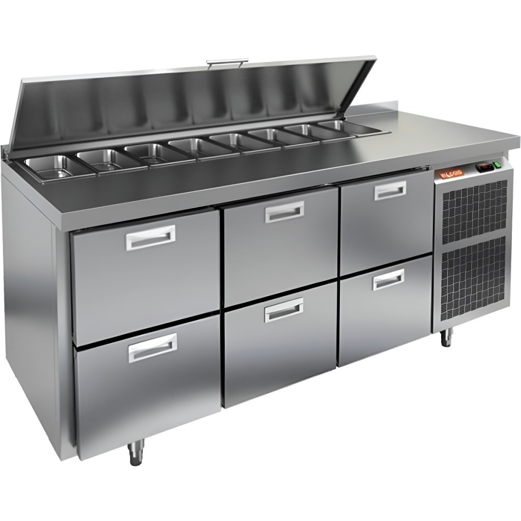 Каталог оборудования Холодильное оборудованиеСтолы охлаждаемыеСтолы холодильные для салатовСтол холодильный для салатов HiCold SL1-222SN (1/3) с крышкой Стол холодильный для салатов HiCold SL1-222SN (1/3) с крышкой Код товара: 064-846 Поделиться: WhatsAppTelegram СравнитьДобавить в КПВ избранное 0 259 642 ₽ В корзину 0 шт Под заказСамовывоз сегодня бесплатно Взять в кредит Купить в лизинг Получить консультацию в WhatsApp Описание Характеристики Отзывы 0 Стол холодильный для салатов HiCold SL1-222SN (1/3) предназначен для использования на предприятиях общественного питания и торговли. Он объединяет рабочую поверхность и охлаждаемый отсек, что делает его удобным решением для хранения, охлаждения и подготовки ингредиентов при приготовлении салатов, пиццы и других блюд. Такая конструкция позволяет повару работать быстрее и эффективнее, так как все необходимые продукты находятся под рукой. Корпус и столешница выполнены из прочной нержавеющей стали, устойчивой к коррозии и легко поддающейся санитарной обработке.Металлическая крышка защищает продукты от загрязнений и сохраняет их свежесть. Особенности модели: Электронная панель управления — точная настройка температурного режима. 6 выдвижных ящика — быстрое размещение и замена продуктов. Вместимость салат-бара — до 8 гастроемкостей глубиной до 100 мм. Автоматические доводчики — комфорт при загрузке/выгрузке. Легкозаменяемые магнитные уплотнители — надежная герметичность. Открытая агрегатная часть — быстрый доступ для обслуживания. Регулируемые по высоте ножки — устойчивость даже на неровном полу. Толщина столешницы, борта и теплоизоляции — 50 мм, что обеспечивает прочность и энергоэффективность конструкции. HiCold SL1-222SN (1/3) — практичное и удобное решение для профессиональной кухни, обеспечивающее удобную подготовку и хранение ингредиентов.Изображение товара, представленного на фото, может отличаться от его фактического вида. Показать все Габаритные размеры1835×600×850 ммДиапазон рабочей температурыот +2 до +10 °CРасположение агрегатаБоковое Материал столешницыНержавеющая Тип столаС ящиками Объём435 лТип гастроемкостейGN 1/3 Количество ящиков6 штНапряжение220 ВМощность0,46 кВтТип охлажденияДинамическое Тип оттайкиАвтоматическая СтолешницаС бортом Габариты в упаковке2000×750×1000 ммВес нетто120 кгВес брутто175 кгБрендHicold Оставить отзыв Еще никто не оставил отзыв на этот товар Ранее просмотрено Под заказ 260 092 ₽ Стол холодильный для салатов HiCold SL1-222GN (1/3) с крышкой Под заказ 163 612 ₽ Стол холодильный для салатов HiCold SL1-111GN (1/3) О без крышки Под заказ 201 682 ₽ Стол холодильный для салатов HiCold SL2-22GN (1/6) О без крышки Под заказ 305 992 ₽ Стол холодильный для салатов HiCold SL1-333GN (1/3) с крышкой Под заказ 209 962 ₽ Стол холодильный для салатов HiCold SL1-133GN (1/3) с крышкой Под заказ 320 392 ₽ Стол холодильный для салатов HiCold SL1-2222GN (1/3) с крышкой Под заказ 174 952 ₽ Стол холодильный для салатов HiCold SLE2-111GN (1/6) О З М с крышкой