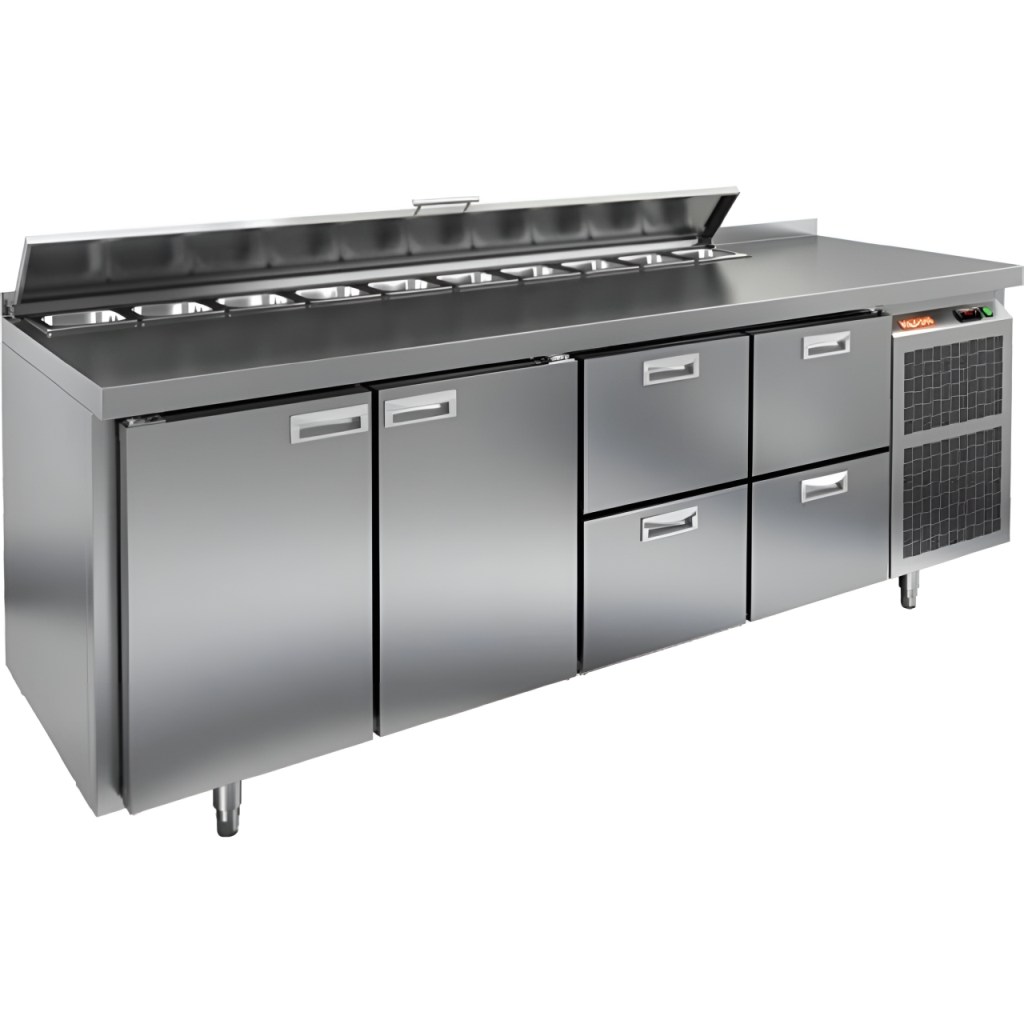 Каталог оборудования Холодильное оборудованиеСтолы охлаждаемыеСтолы холодильные для салатовСтол холодильный для салатов HiCold SL1-332GN (1/3) с крышкой Стол холодильный для салатов HiCold SL1-332GN (1/3) с крышкой Код товара: 064-851 Поделиться: WhatsAppTelegram СравнитьДобавить в КПВ избранное 0 290 692 ₽ В корзину 0 шт Под заказСамовывоз сегодня бесплатно Взять в кредит Купить в лизинг Получить консультацию в WhatsApp Описание Характеристики Отзывы 0 Инструкции 1 Стол холодильный для салатов HiCold SL1-332GN (1/3) предназначен для использования на предприятиях общественного питания и торговли. Он объединяет рабочую поверхность и охлаждаемый отсек, что делает его удобным решением для хранения, охлаждения и подготовки ингредиентов при приготовлении салатов, пиццы и других блюд. Такая конструкция позволяет повару работать быстрее и эффективнее, так как все необходимые продукты находятся под рукой. Корпус и столешница выполнены из прочной нержавеющей стали, устойчивой к коррозии и легко поддающейся санитарной обработке. Металлическая крышка защищает продукты от загрязнений и сохраняет их свежесть. Особенности модели: Электронная панель управления — точная настройка температурного режима. 8 выдвижных ящика — быстрое размещение и замена продуктов. Вместимость салат-бара — до 8 гастроемкостей глубиной до 100 мм. Автоматические доводчики — комфорт при загрузке/выгрузке. Легкозаменяемые магнитные уплотнители — надежная герметичность. Открытая агрегатная часть — быстрый доступ для обслуживания. Регулируемые по высоте ножки — устойчивость даже на неровном полу. Толщина столешницы, борта и теплоизоляции — 50 мм, что обеспечивает прочность и энергоэффективность конструкции. HiCold SL1-332GN (1/3) — практичное и удобное решение для профессиональной кухни, обеспечивающее удобную подготовку и хранение ингредиентов.Изображение товара, представленного на фото, может отличаться от его фактического вида. Показать все Габаритные размеры1835×700×850 ммДиапазон рабочей температурыот +2 до +10 °CРасположение агрегатаБоковое Материал столешницыНержавеющая Тип столаС дверьми и ящиками Тип двериГлухая Объём505 лКоличество дверей2 штТип гастроемкостейGN 1/3 Количество ящиков6 штРазмер полки530×325 ммНапряжение220 ВМощность0,46 кВтТип охлажденияДинамическое Тип оттайкиАвтоматическая СтолешницаС бортом Габариты в упаковке2000×850×1000 ммВес нетто120 кгВес брутто140 кгБрендHicold Оставить отзыв Еще никто не оставил отзыв на этот товар Декларация о соответствии.pdf Ранее просмотрено Под заказ 201 682 ₽ Стол холодильный для салатов HiCold SL2-22GN (1/6) без крышки Под заказ 243 982 ₽ Стол холодильный для салатов HiCold SL2-321GN (1/6) с крышкой Под заказ 13 529 ₽ Ванна моечная с бортом МХМ МБ-1-0,3-0,53/1,01 (AISI 430, t=0,6) Под заказ 294 562 ₽ Стол холодильный для салатов HiCold SLE1-2222GN (1/3) с крышкой