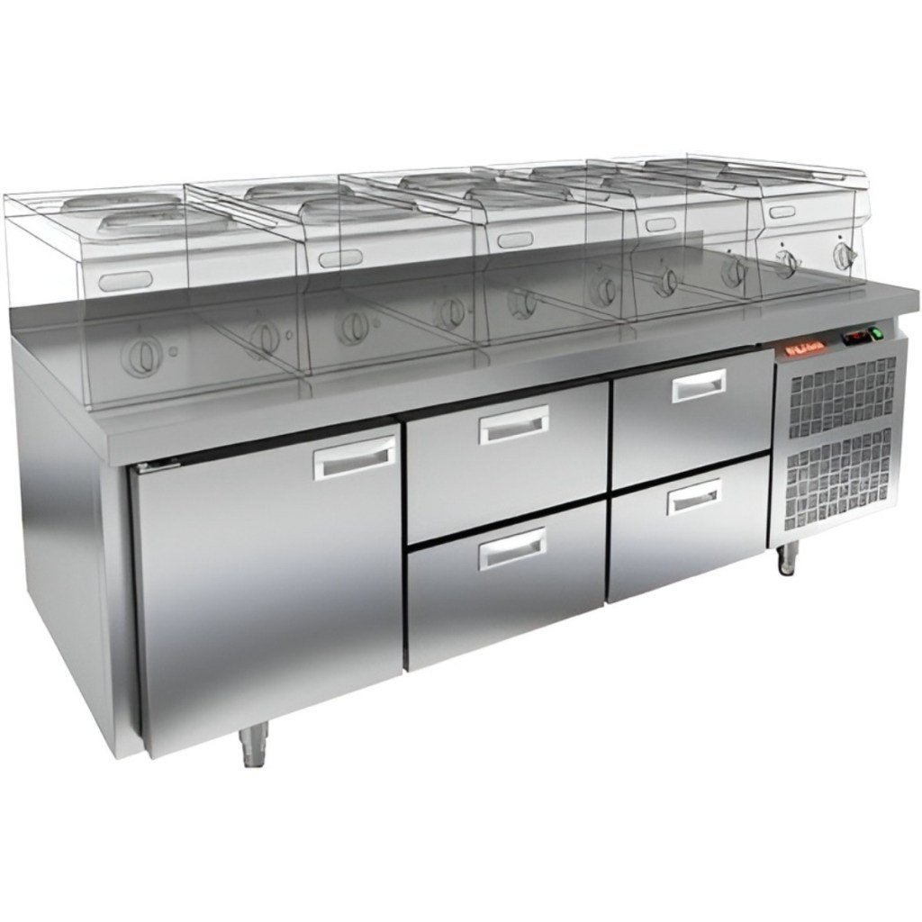 Каталог оборудования Холодильное оборудованиеСтолы охлаждаемыеСтолы холодильные под тепловое оборудованиеСтол охлаждаемый HiCold SN 122/TN LT под тепловое оборудование Стол охлаждаемый HiCold SN 122/TN LT под тепловое оборудование Код товара: 065-547 Поделиться: WhatsAppTelegram СравнитьДобавить в КПВ избранное 0 193 042 ₽ В корзину 0 шт Под заказСамовывоз сегодня бесплатно Взять в кредит Купить в лизинг Получить консультацию в WhatsApp Описание Характеристики Отзывы 0 Инструкции 2 Стол охлаждаемый HiCold SN 122/TN LT SH под тепловое оборудование предназначен для обработки ингредиентов и временного хранения скоропортящихся продуктов и напитков на предприятиях общественного питания и торговли. Устройство совмещает функции рабочей поверхности и холодильной камеры. Столешница рассчитана на установку теплового оборудования: под рабочей поверхностью встроен ДСП-лист, который укрепляет конструкцию и препятствует проникновению тепла внутрь. Такое решение обеспечивает дополнительную жесткость, позволяет рационально использовать рабочее пространство и повышает эффективность работы на кухне. Особенности: 1 распашная дверь — обеспечивает удобный доступ к внутреннему пространству. 4 выдвижных ящика — обеспечивают удобный доступ к продуктам и инвентарю Автоматические доводчики дверей с фиксатором открытого положения повышают эргономику и способствуют сохранению холода. Легкозаменяемые магнитные уплотнители обеспечивают плотное прилегание дверей и лёгкость в обслуживании. Открытая агрегатная часть упрощает доступ к компрессору при техническом обслуживании. Регулируемые по высоте низкие ножки — удобная установка и устойчивость стола даже на неровной поверхности. Толщина столешницы — 50 мм обеспечивает прочность рабочей поверхности. Высота борта — 50 мм предотвращает падение продуктов и инвентаря. Толщина теплоизоляции — 50 мм способствует энергоэффективности и стабильному температурному режиму. HiCold SN 122/TN LT SH — это надёжное и удобное оборудование, сочетающее охлаждение и рабочее пространство. Благодаря продуманной конструкции и совместимости с гастроемкостями GN 1/1, стол станет практичным решением для кухни любого профессионального уровня.Изображение товара, представленного на фото, может отличаться от его фактического вида. Показать все Габаритные размеры1835×600×675 ммДиапазон рабочей температурыот -2 до +10 °CМатериал столешницыНержавеющая Расположение агрегатаБоковое Объём320 лТип столаС дверьми и ящиками Тип двериГлухая Количество дверей1 штКоличество ящиков4 штРазмер полки430×325 ммНапряжение220 ВМощность0,46 кВтТип охлажденияДинамический Тип оттайкиАвтоматическая СтолешницаС бортом Габариты в упаковке1935×740×970 ммВес нетто162 кгВес брутто182 кгБрендHicold Оставить отзыв Еще никто не оставил отзыв на этот товар Паспорт на HICOLD SN 122TN LT SH.pdfДекларация о соответствии.pdf Похожие товары Перейти в каталог В наличии 128 777 ₽ Стол морозильный Cooleq GN3200BT с бортом Под заказ 166 404 ₽ Стол морозильный Abat СХН-70-02 без борта (дверь, дверь, дверь) С этим товаром покупают В наличии 140 675 ₽ Шкаф холодильный универсальный Polair CV 110-S Под заказ 76 010 ₽ Газовый лавовый гриль Abat ГЛК-40Н Ранее просмотрено Под заказ 111 412 ₽ Стол охлаждаемый HiCold GN 11/TN LT под тепловое оборудование
