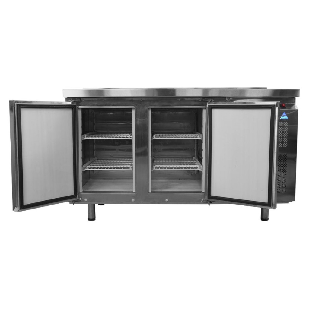• Диапазон температур: -2…+10 °C / +2…+10 °C, что позволяет использовать стол как для охлаждённых, так и для быстро портящихся продуктов.