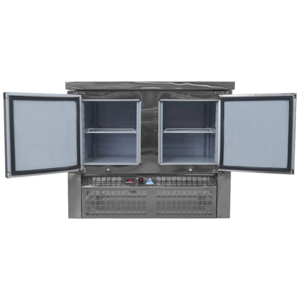 Каталог оборудования Холодильное оборудованиеСтолы охлаждаемыеСтолы морозильные низкотемпературныеСтол морозильный Ангара СХН 1,0-700 Стол морозильный Ангара СХН 1,0-700 Код товара: 066-360 Поделиться: WhatsAppTelegram СравнитьДобавить в КПВ избранное 0 125 788 ₽ В корзину 0 шт Под заказСамовывоз сегодня бесплатно Взять в кредит Купить в лизинг Получить консультацию в WhatsApp Описание Характеристики Отзывы 0 Стол морозильный Ангара СХН 1,0-700 предназначен для заморозки и хранения продуктов на предприятиях общественного питания и торговли. Модель сочетает функциональность, надёжность и удобство эксплуатации, обеспечивая эффективную работу даже при интенсивной загрузке. Компактная конструкция позволяет рационально использовать рабочее пространство кухни. Особенности модели: Нижнее расположение агрегата — обеспечивает лучшую эргономику, удобство обслуживания и равномерное распределение холода. Электронная панель управления — обеспечивает точный контроль и стабильную работу морозильной системы. Прочный корпус и столешница из нержавеющей стали — гарантируют долговечность, устойчивость к влаге и механическим воздействиям. Две дверцы и две полки размером 530×325 мм — позволяют удобно организовать внутреннее пространство и обеспечить быстрый доступ к замороженным продуктам. Регулируемые ножки — дают возможность адаптировать высоту стола под особенности рабочего места. Автоматические доводчики дверей с фиксацией — обеспечивают комфорт при работе и надёжное закрытие. Съёмные магнитные уплотнители — упрощают чистку и замену, сохраняя герметичность камеры и энергоэффективность. Морозильный стол Ангара СХН 1,0-700 — это профессиональное оборудование, идеально подходящее для предприятий общественного питания, где требуется надёжное хранение замороженных продуктов. Благодаря прочной конструкции, современному управлению и продуманной эргономике модель обеспечивает стабильную работу и удобство в ежедневной эксплуатации. Изображение товара, представленного на фото, может отличаться от его фактического вида. Показать все Габаритные размеры1000×700×850 ммДиапазон рабочей температурыот -18 до -10 °CРасположение агрегатаНижнее Материал столешницыНержавеющая Тип столаС дверьми Тип двериГлухая Объём245 лКоличество дверей2 штКоличество полок2 штРазмер полки530×325 ммНапряжение220 ВМощность0,22 кВтТип охлажденияДинамическое Тип оттайкиАвтоматическая СтолешницаС бортом БрендАнгараВсе морозильные столы с бортом Оставить отзыв Еще никто не оставил отзыв на этот товар Ранее просмотрено 68 816 ₽ Льдогенератор кубикового льда ICE TECH Cubic Spray SK35A