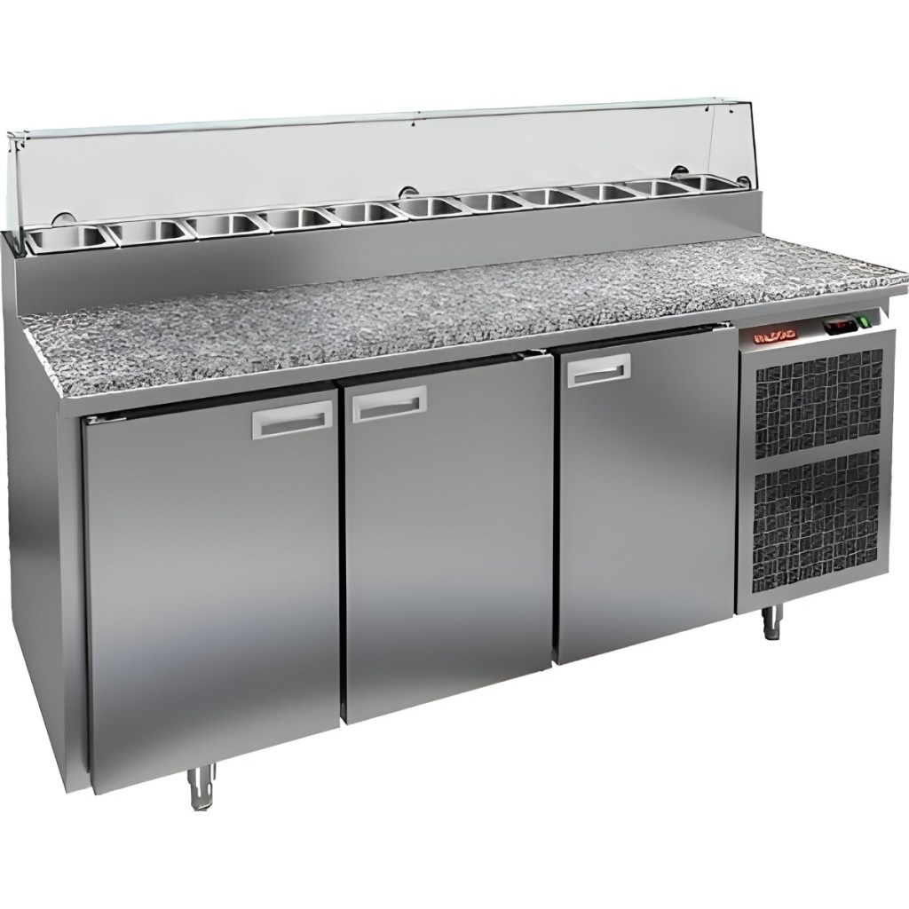 Каталог оборудования Холодильное оборудованиеСтолы охлаждаемыеСтолы холодильные для пиццыСтол холодильный для пиццы HiCold PZ2-111GN (1/6) камень со стеклом Стол холодильный для пиццы HiCold PZ2-111GN (1/6) камень со стеклом Код товара: 064-742 Поделиться: WhatsAppTelegram СравнитьДобавить в КПВ избранное 0 256 672 ₽ В корзину 0 шт Под заказСамовывоз сегодня бесплатно Взять в кредит Купить в лизинг Получить консультацию в Max Описание Характеристики Отзывы 0 Инструкции 2 Стол холодильный для пиццы HiCold PZ2-111GN (1/6) камень со стеклом предназначен для предприятий общественного питания и торговли. Он совмещает рабочую поверхность для раскатки теста и подготовки ингредиентов с охлаждаемым блоком для кратковременного хранения скоропортящихся продуктов и напитков. Стеклянный купол защищает ингредиенты от внешних воздействий и обеспечивает их наглядную демонстрацию, что особенно удобно при использовании в салат-барах. Корпус выполнен из нержавеющей стали, а рабочая столешница — из гранита, что обеспечивает долговечность, прочность и удобство работы с продуктами. Основные особенности: Гранитная столешница и корпус из нержавеющей стали — прочность, долговечность и лёгкость ухода Стеклянный купол — защита ингредиентов и визуальная демонстрация продуктов Динамическая система охлаждения — равномерное распределение холода по всему объёму Автоматическая оттайка — стабильная работа без наледи Электронная панель управления — точная настройка температуры 3 вместительные внутренние полки формата GN 1/1 (размер 530×325 мм) — удобное хранение ингредиентов Автоматические доводчики дверей с фиксатором открытого положения — комфортная эксплуатация Легкозаменяемые магнитные уплотнители — поддержание герметичности Открытая агрегатная часть — лёгкий доступ к техническим элементам Регулируемые по высоте ножки — установка на неровных поверхностях Максимальная глубина гастроёмкостей: 100 мм Глубина рабочей поверхности: 486 мм Толщина столешницы: 50 мм Толщина теплоизоляции: 50 мм Вместимость салат-бара: до 11 гастроёмкостей Стол холодильный HiCold PZ2-111GN (1/6) камень со стеклом— надёжный и функциональный стол для пиццы и салатов. Гранитная рабочая поверхность повышает прочность и долговечность оборудования, а стеклянный купол обеспечивает защиту и наглядное представление ингредиентов. Стол обеспечивает удобство работы и быстрый доступ к продуктам, делая его оптимальным решением для профессиональных кухонь и предприятий общественного питания. Изображение товара, представленного на фото, может отличаться от его фактического вида. Показать все Габаритные размеры1835×700×1000 ммДиапазон рабочей температурыот +2 до +10 °CРасположение агрегатаБоковое Материал столешницыГранитная Тип столаС дверьми Тип двериГлухая Объём505 лТип гастроемкостейGN 1/6 Количество дверей3 штРазмер полки530×325 ммНапряжение220 ВМощность0,46 кВтТип охлажденияДинамическое Тип оттайкиАвтоматическая Габариты в упаковке2000×850×1080 ммВес нетто172 кгВес брутто248 кгБрендHicoldВсе холодильные столы для пиццы Hicold Оставить отзыв Еще никто не оставил отзыв на этот товар Паспорт на HICOLD PZ2-111GN.pdfДекларация о соответствии.pdf Ранее просмотрено В наличии 207 892 ₽ Стол холодильный для пиццы HiCold PZ2-11/GN (1/6H) камень