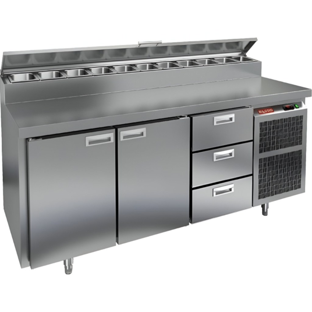 Каталог оборудования Холодильное оборудованиеСтолы охлаждаемыеСтолы холодильные для пиццыСтол холодильный для пиццы HiCold PZ2-113GN (1/6) Стол холодильный для пиццы HiCold PZ2-113GN (1/6) Код товара: 064-761 Поделиться: WhatsAppTelegram СравнитьДобавить в КПВ избранное 0 260 272 ₽ В корзину 0 шт Под заказСамовывоз сегодня бесплатно Взять в кредит Купить в лизинг Получить консультацию в WhatsApp Описание Характеристики Отзывы 0 Инструкции 2 Стол холодильный для пиццы HiCold PZ2-113GN (1/6) предназначен для кухонь и предприятий общественного питания. Он используется для раскатки теста, подготовки ингредиентов для пиццы, салатов и других блюд, а также для охлаждения и кратковременного хранения скоропортящихся продуктов. Модель совмещает нержавеющую рабочую поверхность и охлаждаемый отсек с 2 дверьми и 3 ящиками, обеспечивая удобный доступ к ингредиентам и эффективное хранение. Особенности: Динамическая система охлаждения для равномерного поддержания температуры Автоматическая оттайка для удобного обслуживания Электронная панель управления для точной настройки параметров Вместительная внутренняя полка формата GN 1/1 (размер 530×325 мм) 2 двери и 3 вместительных ящика для хранения ингредиентов Автоматические доводчики дверей с фиксатором открытого положения Легкозаменяемые магнитные уплотнители для герметичности Открытая агрегатная часть для легкого доступа к компонентам Регулируемые по высоте ножки для устойчивости Нержавеющая столешница глубиной 486 мм и толщиной 50 мм — устойчива к коррозии, легко моется и гигиенична Толщина теплоизоляции: 50 мм Максимальная глубина гастроемкостей: 100 мм Вместимость салат-бара: 11 гастроемкости Стол холодильный HiCold PZ2-113GN (1/6) — это надежный и функциональный стол для пиццы. Он объединяет рабочую поверхность и охлаждаемый отсек, упрощает хранение и подготовку ингредиентов, обеспечивает удобство работы повара и соответствует стандартам профессиональной кухни. Изображение товара, представленного на фото, может отличаться от его фактического вида. Показать все Габаритные размеры1835×700×1000 ммДиапазон рабочей температурыот +2 до +10 °CРасположение агрегатаБоковое Материал столешницыНержавеющая Тип столаС дверьми и ящиками Тип двериГлухая Объём505 лТип гастроемкостейGN 1/6 Количество дверей2 штКоличество ящиков3 штРазмер полки530×325 ммНапряжение220 ВМощность0,46 кВтТип охлажденияДинамическое Тип оттайкиАвтоматическая Вес нетто172 кгВес брутто210 кгБрендHicoldВсе холодильные столы для пиццы HicoldВсе нержавеющие холодильные столы для пиццы Оставить отзыв Еще никто не оставил отзыв на этот товар Паспорт на HICOLD PZ2-113GN.pdfДекларация о соответствии.pdf Ранее просмотрено В наличии 250 642 ₽ Стол холодильный для пиццы HiCold PZ2-1111GN (1/6) Под заказ 217 161 ₽ Стол холодильный для пиццы HiCold PZE1-112GN (1/3)