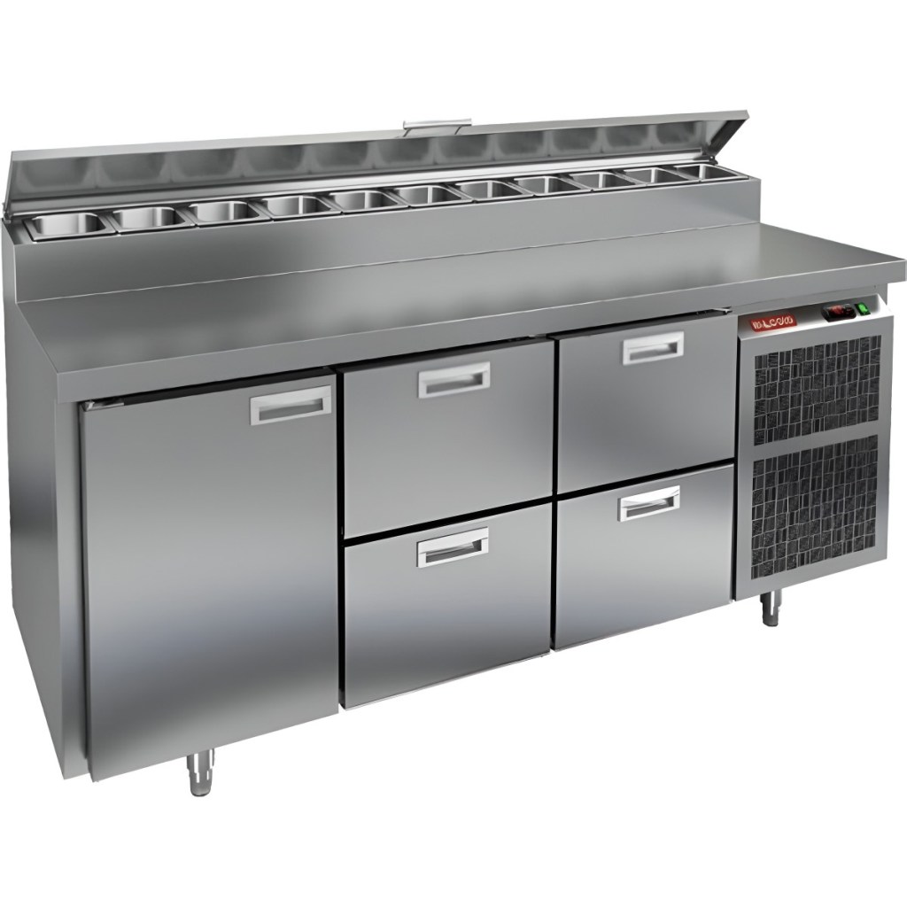 Каталог оборудования Холодильное оборудованиеСтолы охлаждаемыеСтолы холодильные для пиццыСтол холодильный для пиццы HiCold PZ2-122GN (1/6) Стол холодильный для пиццы HiCold PZ2-122GN (1/6) Код товара: 064-756 Поделиться: WhatsAppTelegram СравнитьДобавить в КПВ избранное 0 275 572 ₽ В корзину 0 шт Под заказСамовывоз сегодня бесплатно Взять в кредит Купить в лизинг Получить консультацию в WhatsApp Описание Характеристики Отзывы 0 Стол холодильный для пиццы HiCold PZ2-122GN (1/6) предназначен для кухонь и предприятий общественного питания. Он используется для раскатки теста, подготовки ингредиентов для пиццы, салатов и других блюд, а также для охлаждения и кратковременного хранения скоропортящихся продуктов. Модель совмещает нержавеющую рабочую поверхность и охлаждаемый отсек с 1 дверью и 4 ящиками, обеспечивая удобный доступ к ингредиентам и эффективное хранение. Особенности: Динамическая система охлаждения для равномерного поддержания температуры Автоматическая оттайка для удобного обслуживания Электронная панель управления для точной настройки параметров Вместительная внутренняя полка формата GN 1/1 (размер 530×325 мм) 1 дверь и 4 вместительных ящика для хранения ингредиентов Автоматические доводчики дверей с фиксатором открытого положения Легкозаменяемые магнитные уплотнители для герметичности Открытая агрегатная часть для легкого доступа к компонентам Регулируемые по высоте ножки для устойчивости Нержавеющая столешница глубиной 486 мм и толщиной 50 мм — устойчива к коррозии, легко моется и гигиенична Толщина теплоизоляции: 50 мм Максимальная глубина гастроемкостей: 100 мм Вместимость салат-бара: 11 гастроемкости Стол холодильный HiCold PZ2-122GN (1/6) — это надежный и функциональный стол для пиццы. Он объединяет рабочую поверхность и охлаждаемый отсек, упрощает хранение и подготовку ингредиентов, обеспечивает удобство работы повара и соответствует стандартам профессиональной кухни. Изображение товара, представленного на фото, может отличаться от его фактического вида. Показать все Габаритные размеры1835×700×1000 ммДиапазон рабочей температурыот +2 до +10 °CРасположение агрегатаБоковое Материал столешницыНержавеющая Тип столаС дверьми и ящиками Тип двериГлухая Объём350 лТип гастроемкостейGN 1/6 Количество дверей1 штКоличество ящиков4 штРазмер полки530×325 ммНапряжение220 ВМощность0,5 кВтТип охлажденияДинамическое Тип оттайкиАвтоматическая Габариты в упаковке2000×850×1140 ммВес нетто172 кгВес брутто210 кгБрендHicoldВсе холодильные столы для пиццы HicoldВсе нержавеющие холодильные столы для пиццы Оставить отзыв Еще никто не оставил отзыв на этот товар Ранее просмотрено Под заказ 147 321 ₽ Стол холодильный для пиццы HiCold PZ1-1GN (1/3) В наличии 250 642 ₽ Стол холодильный для пиццы HiCold PZ2-1111GN (1/6) Под заказ 217 161 ₽ Стол холодильный для пиццы HiCold PZE1-112GN (1/3)