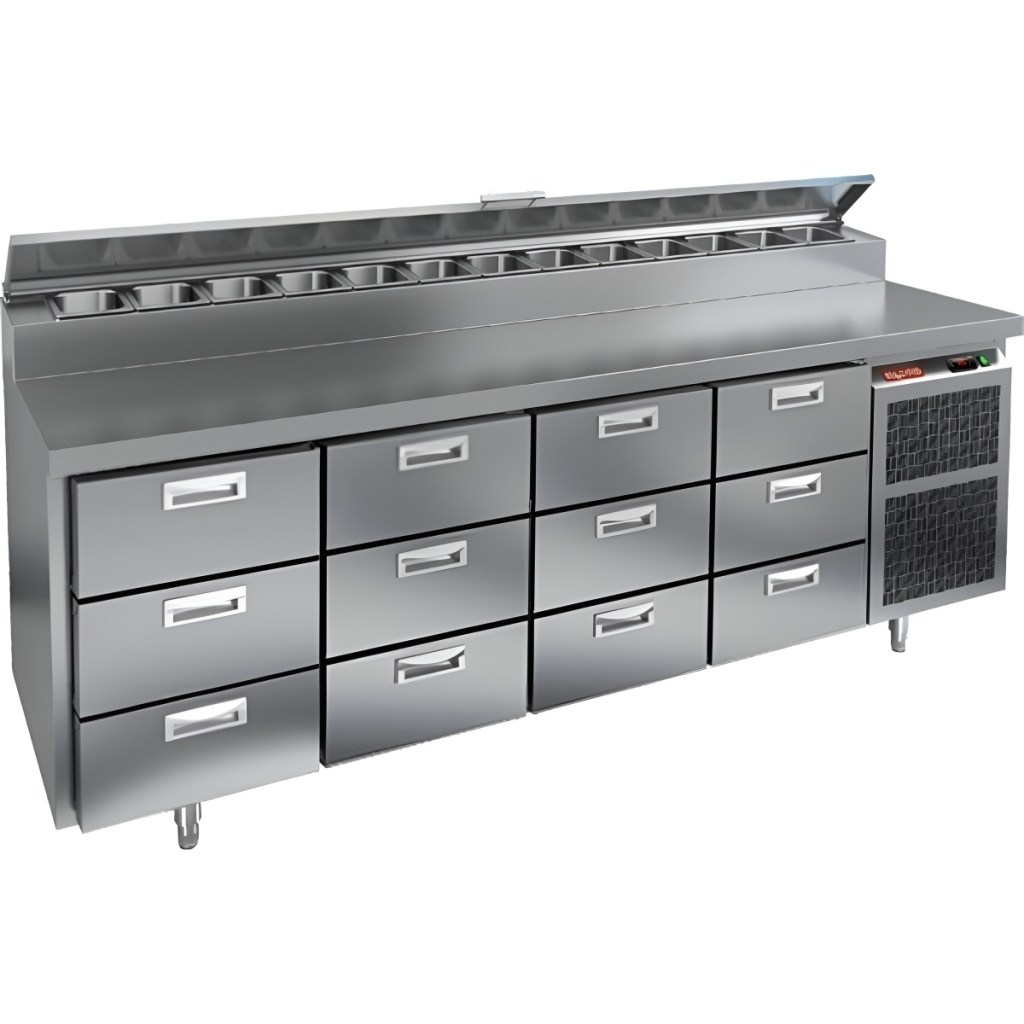 Каталог оборудования Холодильное оборудованиеСтолы охлаждаемыеСтолы холодильные для пиццыСтол холодильный для пиццы HiCold PZ2-3333GN (1/6) Стол холодильный для пиццы HiCold PZ2-3333GN (1/6) Код товара: 064-764 Поделиться: WhatsAppTelegram СравнитьДобавить в КПВ избранное 0 434 242 ₽ В корзину 0 шт Под заказСамовывоз сегодня бесплатно Взять в кредит Купить в лизинг Получить консультацию в WhatsApp Описание Характеристики Отзывы 0 Инструкции 1 Стол холодильный для пиццы HiCold PZ2-3333GN (1/6) камень предназначен для кухонь и предприятий общественного питания. Он используется для раскатки теста, подготовки ингредиентов для пиццы, салатов и других блюд, а также для охлаждения и кратковременного хранения скоропортящихся продуктов. Модель совмещает гранитную рабочую поверхность и охлаждаемый отсек с 12 выдвижными ящиками, обеспечивая удобный доступ к ингредиентам и эффективное хранение без дверей. Особенности: Динамическая система охлаждения для равномерного поддержания температуры Автоматическая оттайка для удобного обслуживания Электронная панель управления для точной настройки параметров Вместительная внутренняя полка формата GN 1/1 (размер 530×325 мм) 12 выдвижных ящиков для хранения ингредиентов Легкозаменяемые магнитные уплотнители для герметичности Открытая агрегатная часть для легкого доступа к компонентам Регулируемые по высоте ножки для устойчивости Гранитная столешница глубиной 486 мм и толщиной 50 мм — устойчива к повреждениям, легко моется и гигиенична Толщина теплоизоляции: 50 мм Максимальная глубина гастроемкостей: 100 мм Вместимость салат-бара: 13 гастроемкости Стол холодильный HiCold PZ2-3333GN (1/6) камень — это надежное и удобное решение для профессиональной кухни. Он обеспечивает легкий доступ к ингредиентам, упрощает хранение и подготовку продуктов и полностью соответствует стандартам предприятий общественного питания.Изображение товара, представленного на фото, может отличаться от его фактического вида. Показать все Габаритные размеры2280×700×1000 ммДиапазон рабочей температурыот +2 до +10 °CРасположение агрегатаБоковое Материал столешницыНержавеющая Тип столаС ящиками Объём660 лТип гастроемкостейGN 1/6 Количество ящиков12 штРазмер полки530×325 ммНапряжение220 ВМощность0,5 кВтТип охлажденияДинамическое Тип оттайкиАвтоматическая Габариты в упаковке2420×850×1080 ммВес нетто208 кгВес брутто240 кгБрендHicoldВсе холодильные столы для пиццы HicoldВсе нержавеющие холодильные столы для пиццы Оставить отзыв Еще никто не оставил отзыв на этот товар Декларация о соответствии.pdf Ранее просмотрено Под заказ 247 761 ₽ Стол холодильный для пиццы HiCold PZE2-221/GN (1/6H) Под заказ 217 161 ₽ Стол холодильный для пиццы HiCold PZE2-211/GN (1/6H)