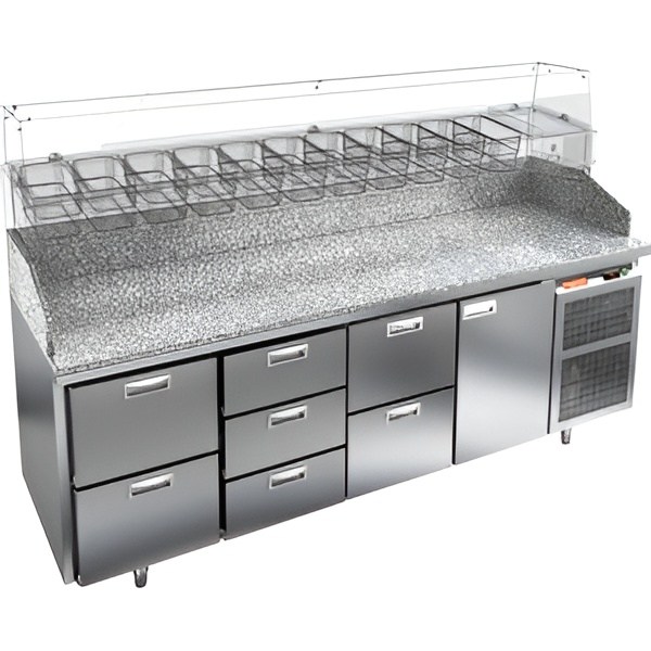 Каталог оборудования Холодильное оборудованиеСтолы охлаждаемыеСтолы холодильные для пиццыСтол холодильный для пиццы HiCold PZ3-2321/GN камень Стол холодильный для пиццы HiCold PZ3-2321/GN камень Код товара: 065-015 Поделиться: WhatsAppTelegram СравнитьДобавить в КПВ избранное 0 391 221 ₽ В корзину 0 шт Под заказСамовывоз сегодня бесплатно Взять в кредит Купить в лизинг Получить консультацию в WhatsApp Описание Характеристики Отзывы 0 Стол холодильный для пиццы HiCold PZ3-2321/GN камень предназначен для использования в пиццериях, кафе, магазинах и ресторанах. Он идеально подходит для раскатки теста, подготовки ингредиентов и кратковременного хранения скоропортящихся продуктов. Витрина приобретается отдельно. Стол сочетает корпус из нержавеющей стали и гранитную столешницу, которая устойчива к механическим и температурным нагрузкам и удобна в работе с тестом. Такая конструкция обеспечивает долговечность, гигиеничность и простоту ухода. Особенности модели: Охлаждение: динамическое — равномерное поддержание температуры Оттайка: автоматическая — удобство и экономия времени Панель управления: электронная — точная настройка температуры Ножки: регулируемые по высоте — устойчивость на неровной поверхности Двери: 1 глухая дверца с автоматическими доводчиками и фиксатором открытого положения Ящики: 7 выдвижных ящика — удобное хранение ингредиентов Уплотнители: легкозаменяемые магнитные — герметичность и простота обслуживания Толщина теплоизоляции: 50 мм — сохранение холода и энергоэффективность Рабочая поверхность: глубина 680 мм — удобство работы HiCold PZ3-2321/GN камень — это надёжный и функциональный холодильный стол для пиццы, который сочетает прочность, эргономику и эффективное охлаждение. Благодаря гранитной столешнице, корпусу из нержавеющей стали, двум глухим дверям и двум выдвижным ящикам он станет универсальным решением для профессиональной кухни. Изображение товара, представленного на фото, может отличаться от его фактического вида. Показать все Габаритные размеры2280×700×1050 ммДиапазон рабочей температурыот +2 до +10 °CРасположение агрегатаБоковое Материал столешницыГранитная Тип столаС дверьми и ящиками Тип двериГлухая Объём660 лКоличество дверей1 штКоличество ящиков7 штРазмер полки530×325 ммНапряжение220 ВМощность0,5 кВтТип охлажденияДинамическое Тип оттайкиАвтоматическая Габариты в упаковке2430×850×1140 ммВес нетто270 кгВес брутто320 кгБрендHicoldВсе холодильные столы для пиццы HicoldВсе нержавеющие холодильные столы для пиццы Оставить отзыв Еще никто не оставил отзыв на этот товар Ранее просмотрено Под заказ 358 552 ₽ Стол холодильный для пиццы HiCold PZ3-222/GN камень