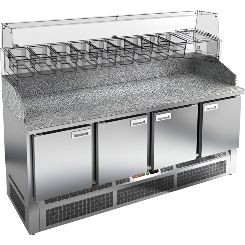 Каталог оборудования Холодильное оборудованиеСтолы охлаждаемыеСтолы холодильные для пиццыСтол холодильный для пиццы HiCold PZE3-1111/SN (R290) камень Стол холодильный для пиццы HiCold PZE3-1111/SN (R290) камень Код товара: 062-041 Поделиться: WhatsAppTelegram СравнитьДобавить в КПВ избранное 0 264 141 ₽ В корзину 0 шт Под заказСамовывоз сегодня бесплатно Взять в кредит Купить в лизинг Получить консультацию в WhatsApp Описание Характеристики Отзывы 0 Инструкции 2 Стол холодильный для пиццы HiCold PZE3-1111/SN (R290) камень предназначен для использования на предприятиях общественного питания и торговли. Он идеально подходит для раскатки теста, подготовки ингредиентов и кратковременного хранения скоропортящихся продуктов и напитков. Благодаря совмещению охлаждаемого объёма и просторной рабочей поверхности, стол значительно упрощает и ускоряет процесс приготовления блюд. Корпус изготовлен из нержавеющей стали, а прочная гранитная столешница устойчива к механическим и температурным нагрузкам. Совместимость с холодильными витринами: VRTG 1970, VRTU 1970, VRTO 1970. Особенности модели: Электронная панель управления — позволяет точно контролировать температурный режим. 4 вместительные внутренние полки формата GN 1/1 — обеспечивают удобное хранение ингредиентов. Автоматические доводчики дверей с фиксатором открытого положения — повышают комфорт в работе. Легкозаменяемые магнитные уплотнители — обеспечивают герметичность и лёгкость обслуживания. Открытая агрегатная часть — облегчает доступ к элементам обслуживания. Регулируемые по высоте ножки — позволяют установить стол на неровной поверхности. Глубина рабочей поверхности: 580 мм — обеспечивает достаточное пространство для приготовления. Толщина столешницы: 50 мм — гарантирует прочность и надёжность конструкции. Толщина теплоизоляции: 50 мм — способствует сохранению холода и энергоэффективности. Hicold PZE3-1111/SN (R290) камень — профессиональный стол для пиццы, сочетающий в себе эргономику, долговечность и удобство, что делает его отличным выбором для интенсивной работы на кухне.Изображение товара, представленного на фото, может отличаться от его фактического вида. Показать все Габаритные размеры1970×600×1050 ммДиапазон рабочей температурыот +2 до +10 °CРасположение агрегатаНижнее Материал столешницыГранитная Тип столаС дверьми Тип двериГлухая Объём430 лКоличество дверей4 штРазмер полки430×325 ммНапряжение220 ВТип охлажденияДинамическое Тип оттайкиАвтоматическая Габариты в упаковке2000×850×1180 ммВес нетто191 кгВес брутто211 кгБрендHicoldВсе холодильные столы для пиццы Hicold Оставить отзыв Еще никто не оставил отзыв на этот товар Паспорт на HICOLD PZE3-1111/SN (R290).pdfДекларация о соответствии.pdf Ранее просмотрено Под заказ 418 637 ₽ Горка холодильная МХМ Барселона 210/98 ВХНп-2,35 Под заказ 224 100 ₽ Горка холодильная Ангара ГХ 900 - 1,875 (без боковин)