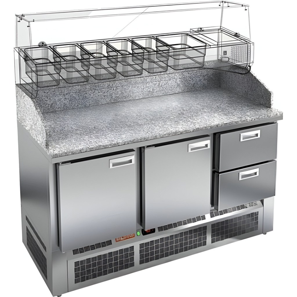 HiCold PZE3-112/SN камень— надёжный и функциональный холодильный стол с гранитной столешницей, который сочетает прочность, удобство в работе и эффективное охлаждение продуктов. Он станет универсальным решением для профессиональной кухни, где важны скорость, организация и сохранение свежести ингредиентов.
